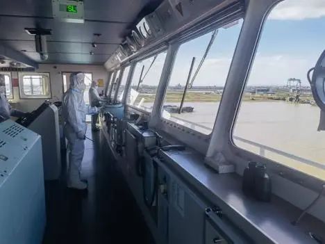 專班引航員們則繼續逆行在海上抗疫一線,日夜堅守、砥礪前行,每次登船他們都穿著一身厚重的防護服、佩戴護目鏡和口罩爬上十幾層高的駕駛臺,面對復雜的水文、潮汐還有通航環境,用精準的操作和指令引領每一條船舶安全平穩地停靠在碼頭。專班引航員們以“舍小家、為大家”的精神持續織牢織密戰“疫”體系、激勵拼搏精神、時刻保持戰斗姿態,做好了打贏“疫情防控阻擊戰”的一切準備,以昂揚地姿態迎接戰“疫”的最終勝利,以優異的成績給鹽城港港航事業獻禮。