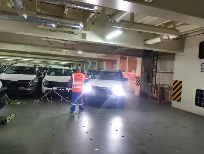 業(yè)務(wù)開展期間,工作人員密切配合,對每臺車輛進行固定和檢查,熟練地進行綁扎工作,確保車輛在運輸過程中不會發(fā)生絲毫移動,仔細查驗車輛的外觀和內(nèi)部設(shè)備,不放過任何一個可能存在的問題,同時安排專人專崗緊盯作業(yè)流程,嚴格把關(guān)汽車裝船及加固作業(yè),反復(fù)檢查每一個螺栓的緊固程度、每一根繩索的拉力大小,確保萬無一失,將高標(biāo)準作業(yè)貫穿于卸車、驗車、收車、裝船、加固等各個環(huán)節(jié)。
