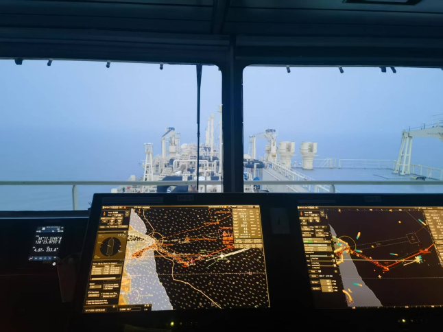 面對“晨昏蒙影”特殊時段(黎明前光線昏暗期),引航員提前1小時登輪,與船長反復核對潮汐、流速和船舶操縱特性。在朝陽初升的關鍵窗口期,引航員通過精準操控,在大馬力拖輪協同配合下,克服船舶慣性、風流壓差等技術難點完成精準靠泊。