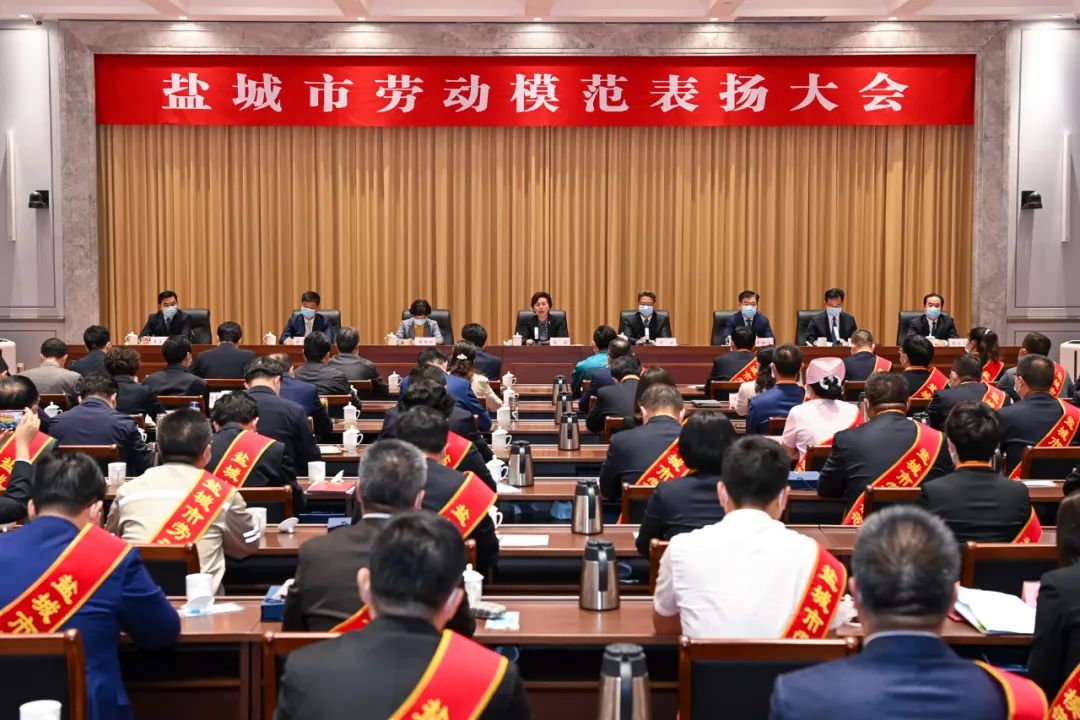 下午3時(shí),大會(huì)開始,全體起立,奏唱國(guó)歌。會(huì)上宣讀《中共鹽城市委鹽城市人民政府關(guān)于表揚(yáng)鹽城市勞動(dòng)模范的決定》,授予300名同志“鹽城市勞動(dòng)模范”稱號(hào)。在喜慶的氣氛中,身披紅色綬帶的市勞動(dòng)模范代表登上主席臺(tái),市領(lǐng)導(dǎo)向他們頒發(fā)榮譽(yù)證書和獎(jiǎng)?wù)隆{}城郵政公司快遞員陳國(guó)勇代表市勞動(dòng)模范宣讀倡議書,號(hào)召全市廣大勞動(dòng)者勤奮勞動(dòng),扎實(shí)工作,銳意進(jìn)取,勇于創(chuàng)造,以昂揚(yáng)向上的精神狀態(tài)和“比學(xué)趕超”的工作干勁,再創(chuàng)新業(yè)績(jī)、建功新時(shí)代,以實(shí)際行動(dòng)迎接黨的二十大勝利召開。