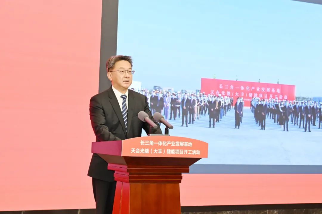 5月17日下午,我市舉行長三角一體化產(chǎn)業(yè)發(fā)展基地重大項目“云開工”儀式,天合(大豐)儲能系列項目正式開工,助力鹽城新能源產(chǎn)業(yè)發(fā)展、打造零碳產(chǎn)業(yè)園區(qū)。市委書記徐纓出席并宣布項目開工,市長周斌、天合光能股份有限公司董事長高紀凡分別致辭。