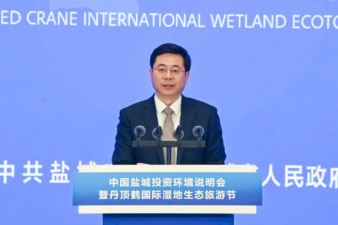 他說,鹽城是長三角中心區城市,潛力巨大、基礎扎實、特色鮮明。去年,全市地區生產總值在全國337個地級以上城市中位列第39位,今年一季度,全市地區生產總值增速列全省第1位,實現“開局穩”“開門紅”。我們正致力打造特色鮮明的產業集群、聚力搭建更具活力的載體平臺、奮力展示生態旖旎的世遺品牌、著力建設宜居宜業的美麗家園,努力為江蘇現代化建設作出新的貢獻。期待更多的海內外朋友走進鹽城,感受這片熱土的創業激情,分享無限的發展機遇。