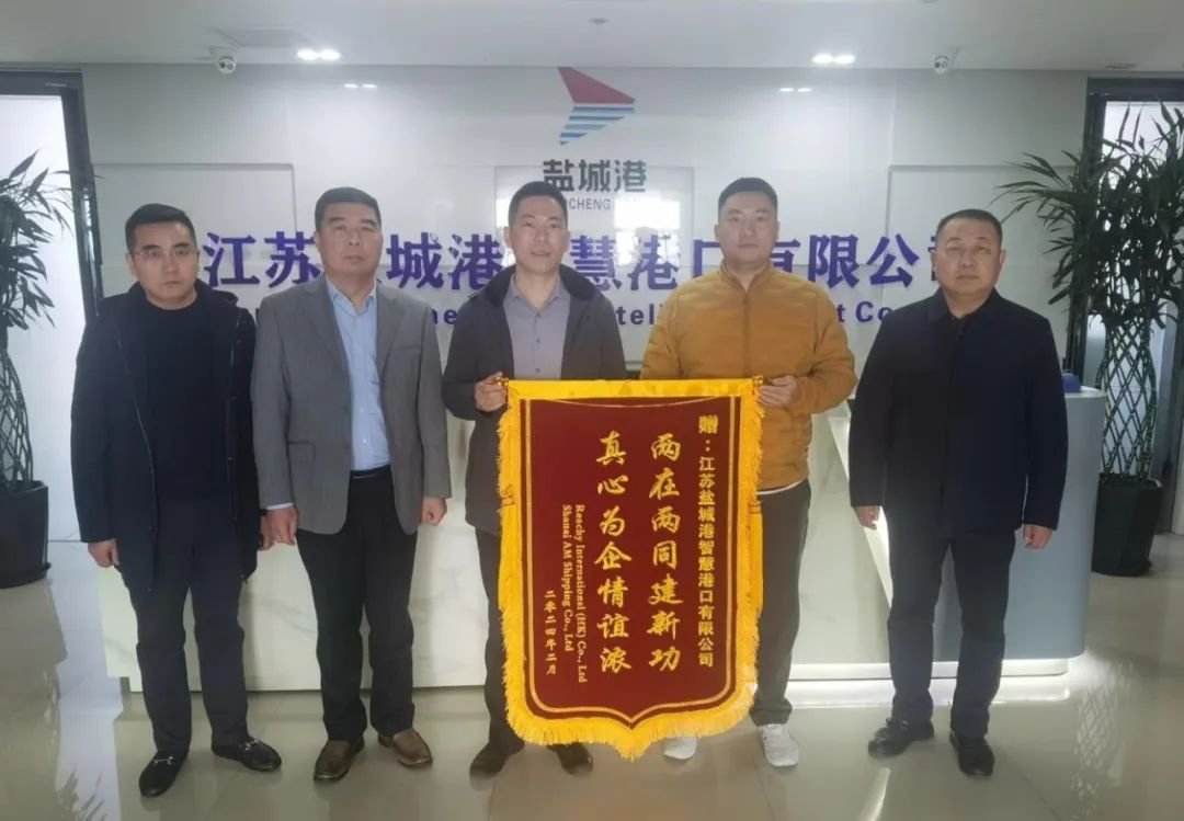 3月11日,香港汭灃航運有限公司、上海禛航船務有限公司代表送來了寫有“真誠服務為航海,優質高效促發展”“兩在兩同建新功 真心為企情誼濃”字樣的錦旗,對鹽城港航運集團、智慧港口公司長期以來提供的優質高效的服務表達感謝之情。