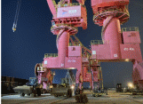 “5#門機(jī)入軌正常”“行走機(jī)構(gòu)壓輪正常”“回轉(zhuǎn)、起升、變幅機(jī)構(gòu)運(yùn)行正常”隨著現(xiàn)場(chǎng)指揮員對(duì)講機(jī)里傳來(lái)各機(jī)構(gòu)一切正常運(yùn)行的報(bào)告,經(jīng)過(guò)10個(gè)晝夜的連續(xù)奮戰(zhàn),鹽城港射陽(yáng)港區(qū)碼頭門機(jī)移位作業(yè)宣告完美收官。