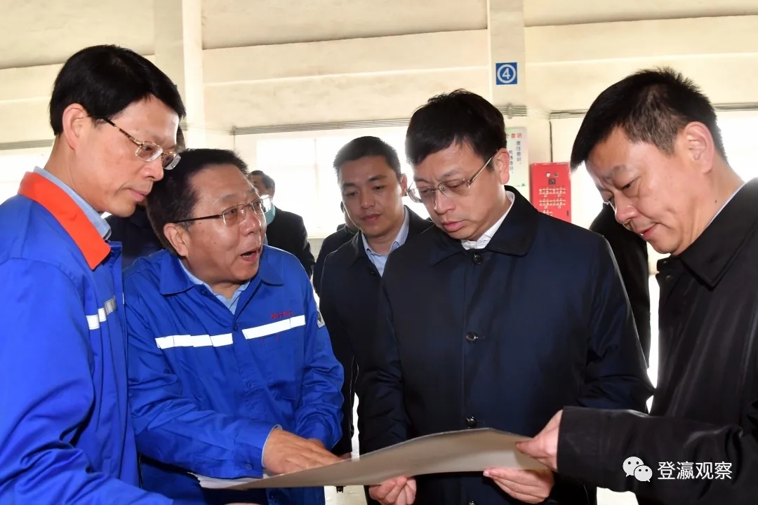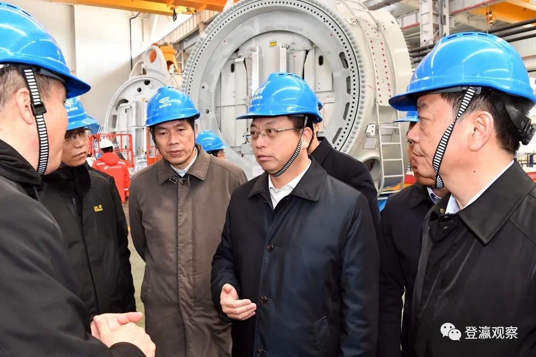 ▲市長(zhǎng)曹路寶察看金風(fēng)科技整機(jī)總裝廠和16MW傳動(dòng)實(shí)驗(yàn)室