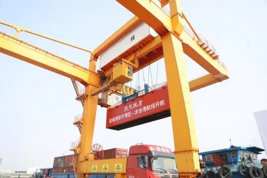 鹽城港再添內河集裝箱新航線 鹽城港阜寧港區至太倉港航線正式開航