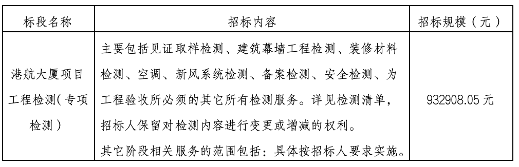 (1)項(xiàng)目名稱:港航大廈項(xiàng)目工程檢測(專項(xiàng)檢測)