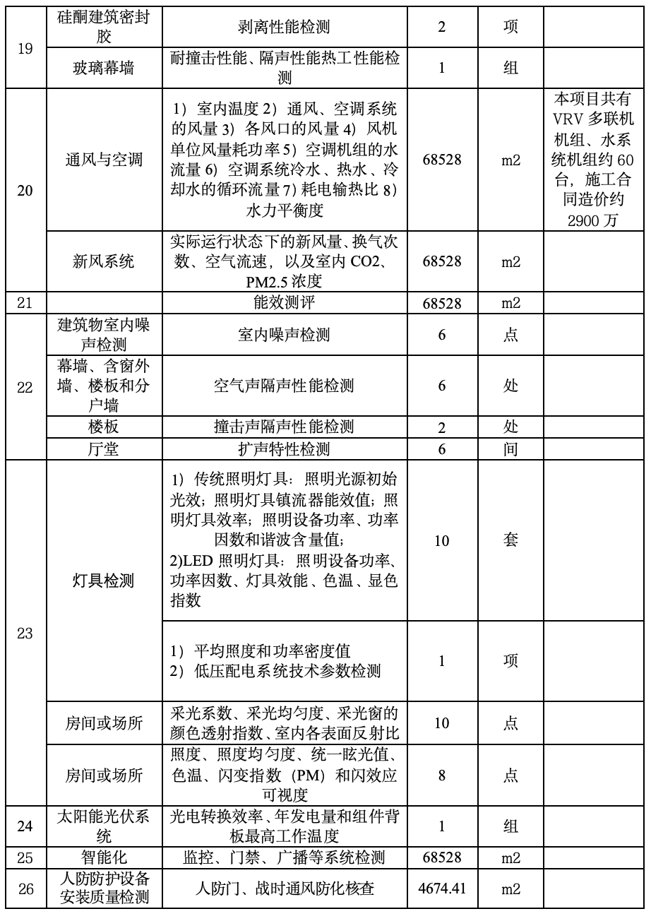 (9)檢測清單:本次招標(biāo)檢測清單明細(xì)如下: