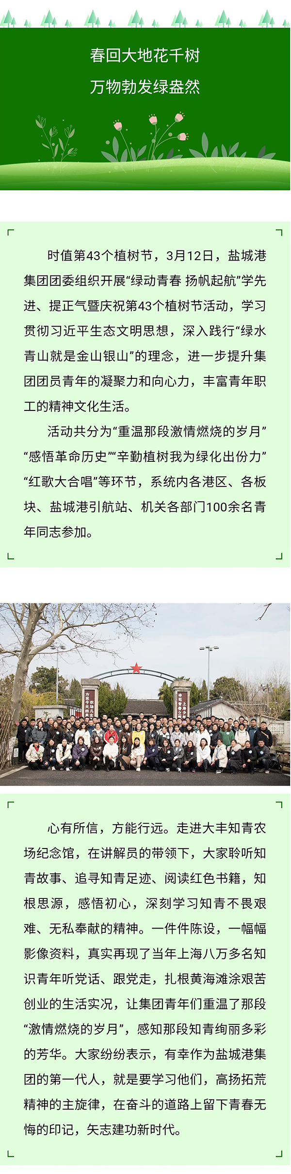 綠動青春 揚帆起航丨鹽城港集團開展青年職工學先進提正氣暨慶祝第43個植樹節活動