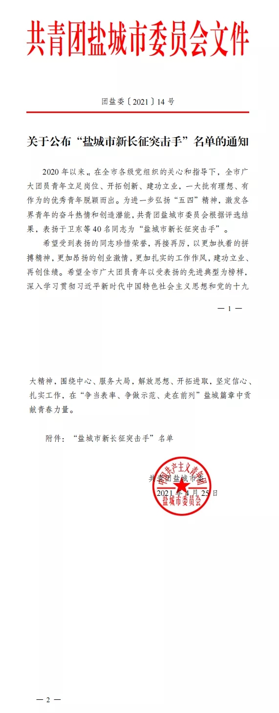 在五四青年節來臨之際,鹽城港集團3名青年職工榮獲市級表彰。