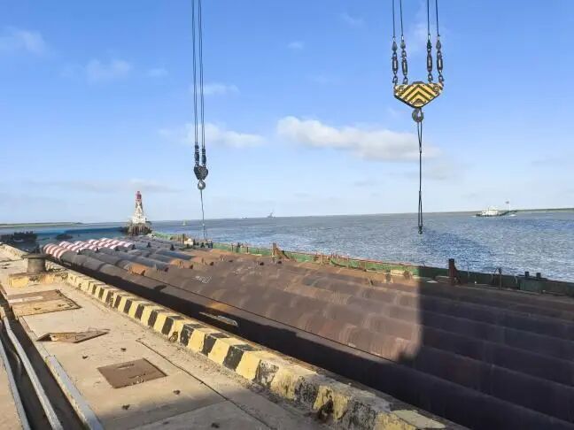 面對密集到港船舶和緊張船期,港區科學統籌作業資源,優化物流組織,通過整合路線、強化聯運、推廣直取直裝等方式,打通銜接堵點,實現“車船直裝、貨不落地”的高效轉運模式。近日,光伏管樁項目第8船作業圓滿完成,展示了港區高效協同、精準作業的硬核實力,為后續新業務開展樹立了標桿。
