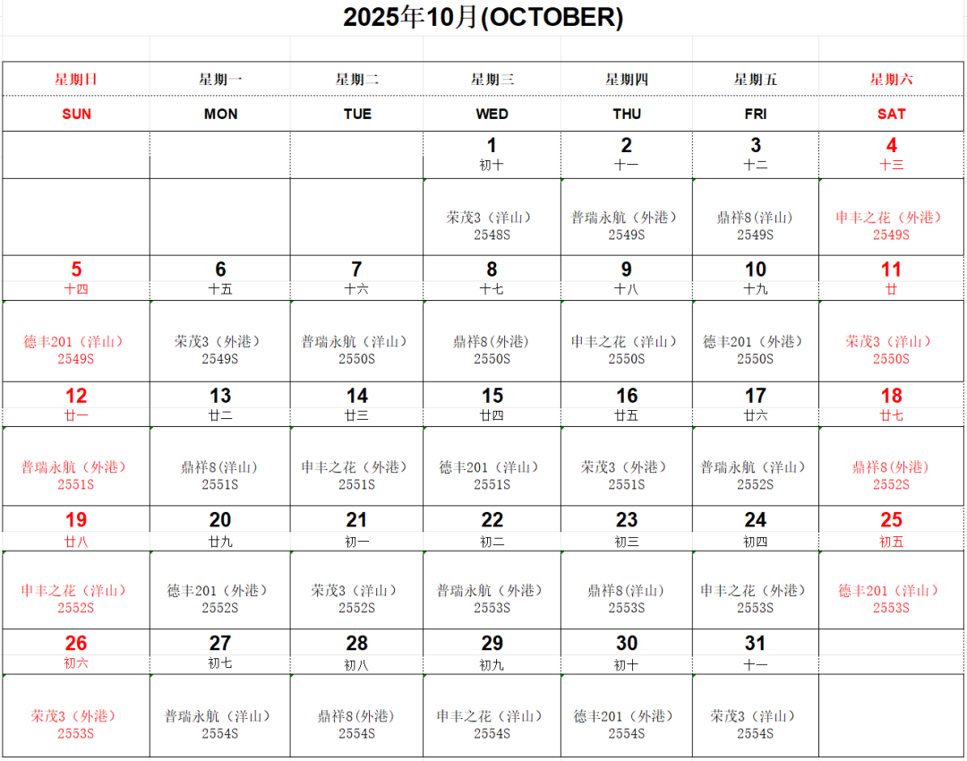 “滬鹽專線”10月船期表已經(jīng)新鮮出爐!