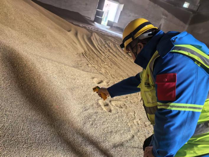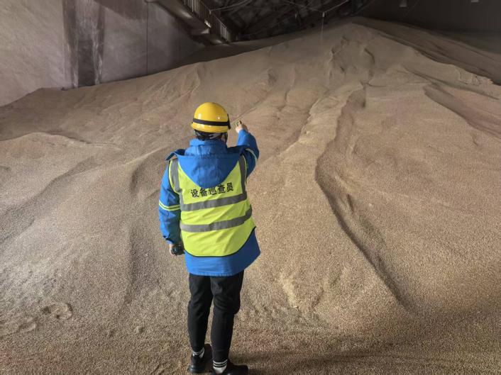 倉儲組員工手持測溫槍守護糧食品質。他們每日深入糧倉,檢測糧食溫濕度,記錄數據、分析糧情,及時采取通風、翻倒等措施,防止糧食發熱、霉變。糧食驗收、進出庫核對、臺賬登記,每個環節都精益求精,嚴謹守護糧食存儲安全與流轉順暢。