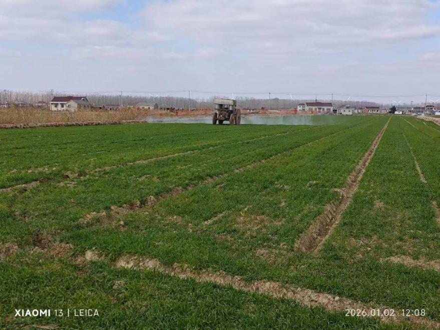 針對當前二麥、油白菜長勢不均衡的突出問題,金色農(nóng)業(yè)堅持“人防為先、精準施策”,組織農(nóng)技人員分片包聯(lián)、下沉田間,逐地塊排查苗情、墑情,因地制宜制定差異化管護方案,扎實推進抗旱補肥、促弱轉(zhuǎn)壯等關鍵技術措施落地見效。對仍處于“土里捂”狀態(tài)、未出苗或出苗不齊,且表墑偏旱的田塊,搶抓日間氣溫回升的適宜時機,組織人工配合機械開展噴灌、溝灌洇水作業(yè),勻速補水、適度增墑,全力促進作物出苗齊、長勢勻;對3葉以下、表墑偏旱的麥田、菜田,在精準灌溉的基礎上,同步補施尿素或葉面噴施補氮制劑,快速補充養(yǎng)分、緩解旱情,助力弱苗提勢;對4-6葉期、群體偏大的田塊,精準開展化控調(diào)控,搭配噴施磷鉀肥,有效抑制無效分蘗、促進健壯生長,為在田作物平衡長勢、安全越冬筑牢堅實基礎。